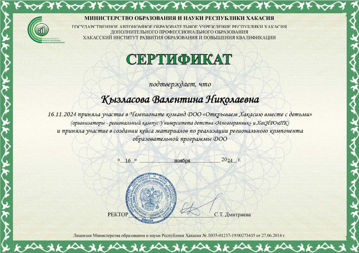 Сертификат.Чемпионат команд ДОО "Открываем Хакасию вместе с детьми" 16.11.2024